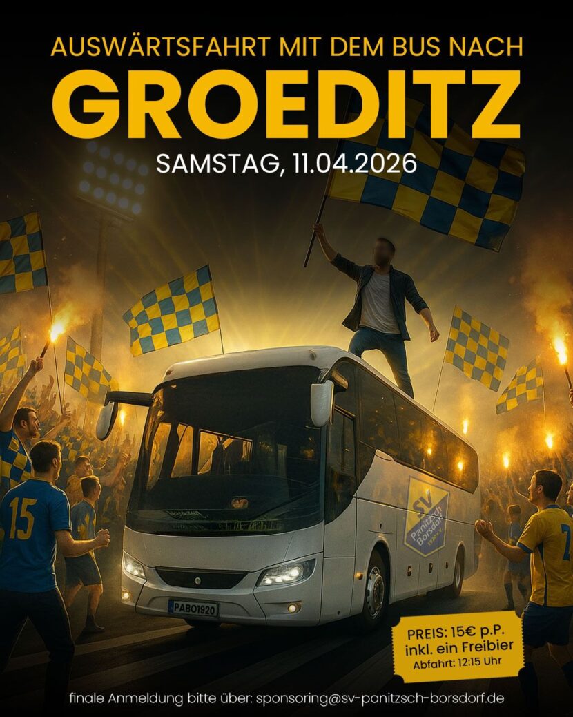 Wir haben ca. 30 Sitzplätze für euch reserviert. Also schnell anmelden und einen Platz im PaBo-Bus nach Gröditz sichern! Wir freuen uns auf zahlreiche, blau-gelbe Schlachtenbummler 💙💛